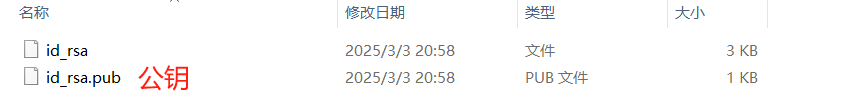 - 里面有2个文件一个是公钥 一个是私钥,打开方式用记事本打开即可: