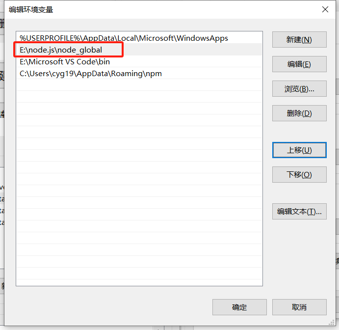 编辑用户变量中的Path编辑,将node_global路径放在AppData\Roaming\npm下面