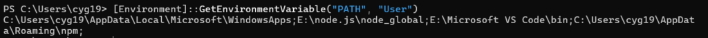 1 | [Environment]::GetEnvironmentVariable("PATH", "User") |
