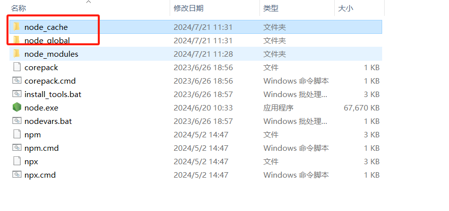 环境配置找到安装位置新建两个文件夹node_global和node_cache