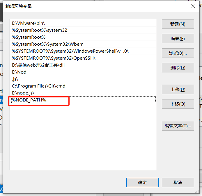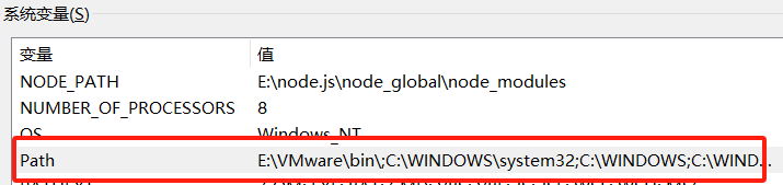 然后在系统变量Path编辑添加%NODE_PATH%
