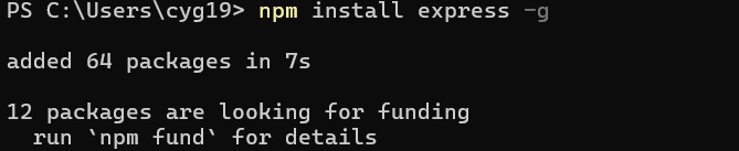 1 | npm install express -g |