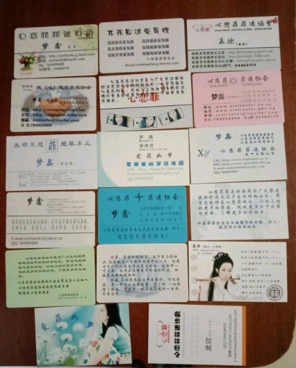 我甚至还花钱给自己印了名片,名片上面印着“生命不息,爱菲不止”。虽然印在名片上的网站、论坛早已消逝在时间的洪流中,印名片这件事情也显得年少的我懵懂无知,这些行为或许让人啼笑皆非,但是年少时期诚挚热烈的喜爱却从未改变!