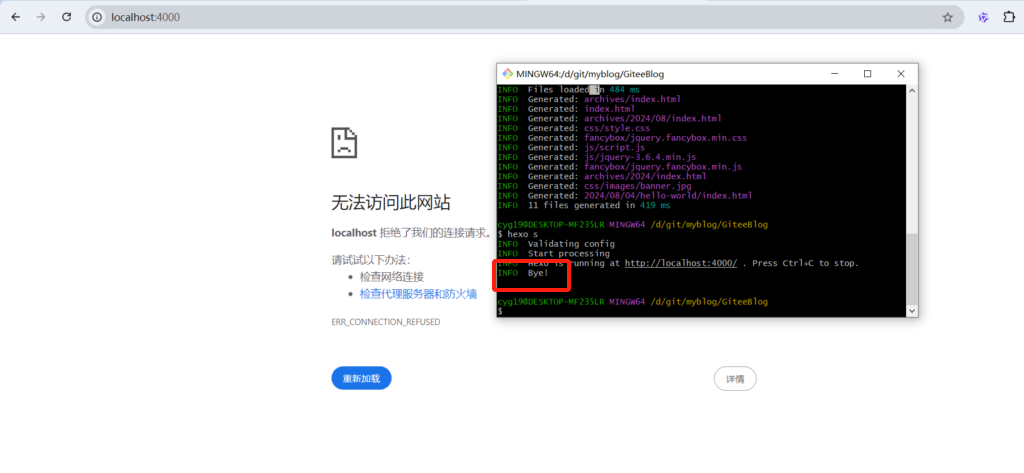之后就可以直接在浏览器里输入这个网址http://localhost:4000 (别乱按ctrl+c,这是停止命令)