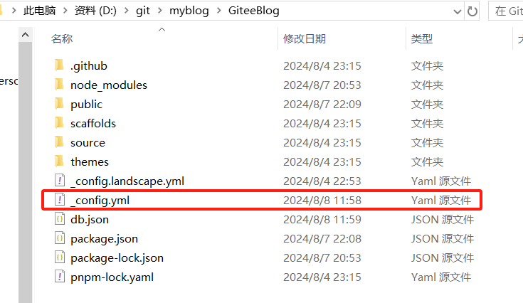 _config.yml 存放的是博客配置信息, source/_posts 是存放文章的地方。
