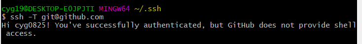 ssh -T git@github.com //测试是否成功,successfully已成功,因为在之前已经使用了ssh密钥