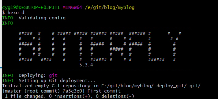 如果没有安装插件,此时直接执行 hexo d 的话一般会报如下错误:(直接按步骤走了,所以我没有报错)