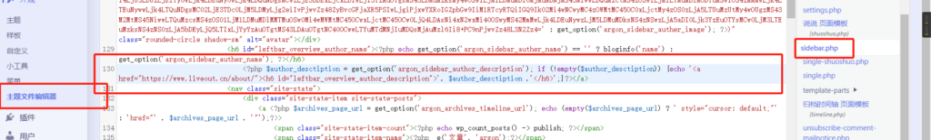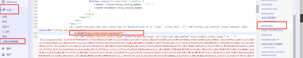在 外观 — 主题文件编辑器 中,选择 边栏文件(sidebar.php)