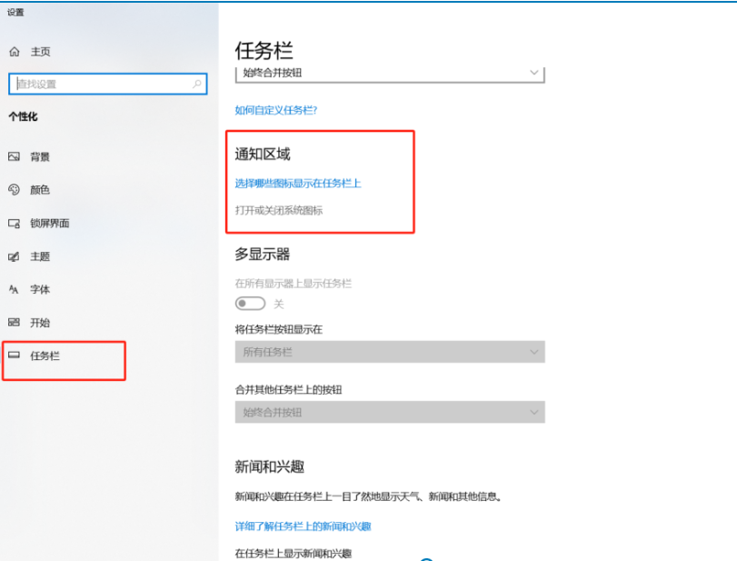 2. 找到`通知区域`栏,并左键单击`打开或关闭系统图标