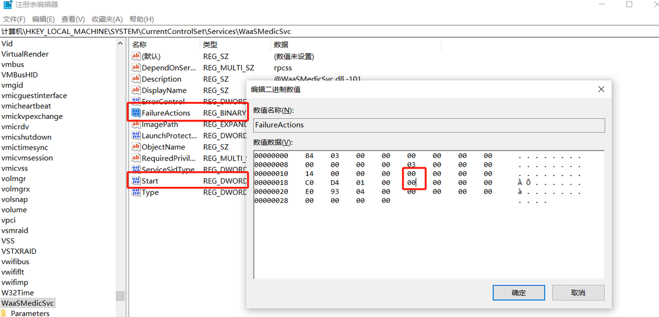 计算机\HKEY_LOCAL_MACHINE\SYSTEM\CurrentControlSet\Services\WaaSMedicSvc