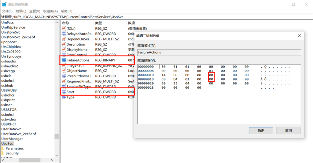 计算机\HKEY_LOCAL_MACHINE\SYSTEM\CurrentControlSet\Services\UsoSvc