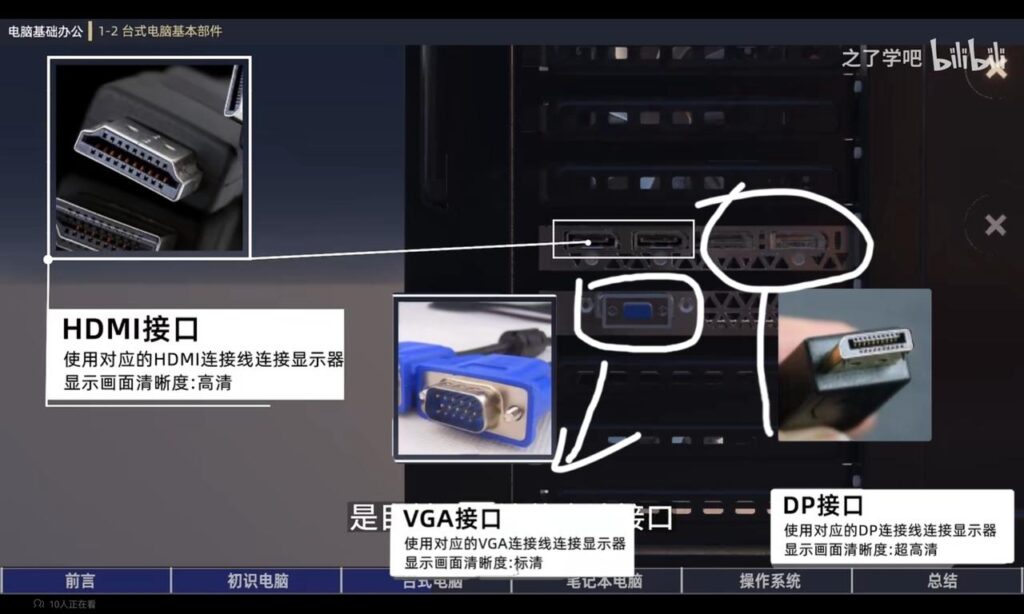 显示器接口:VGA接口、HDMI接口、DP接口
