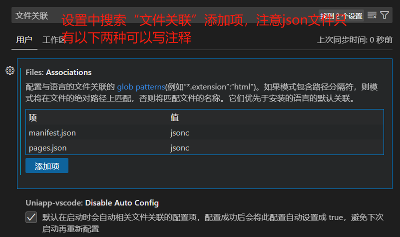 设置中搜索“文件关联”,添加项manifest.json和pages.json 值jsonc 其他json文件不能添加注释