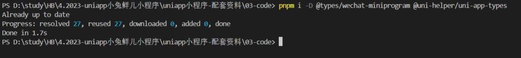 安装 类型声明文件pnpm i -D @types/wechat-miniprogram @uni-helper/uni-app-types