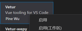 工作区禁用 Vetur 插件(Vue2 插件和 Vue3 插件冲突)下面是禁用状态