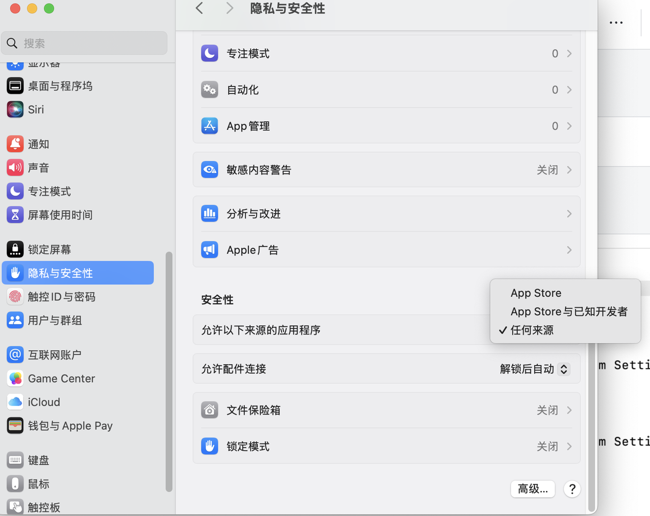 然后到设置的隐私与安全,找到允许以下来源程序选择任何来源