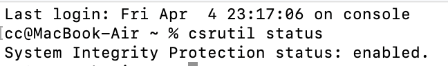 在终端输入csrutil status