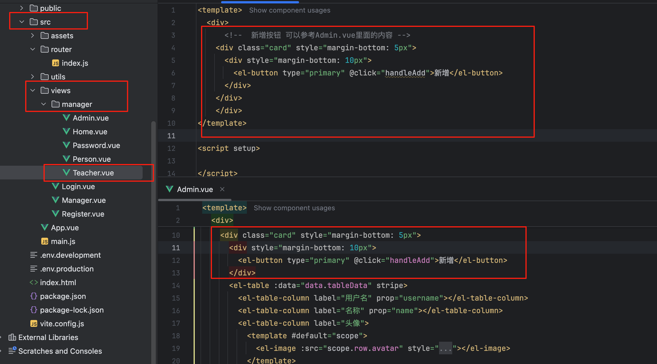 在manager下面新建一个Teacher.vue
