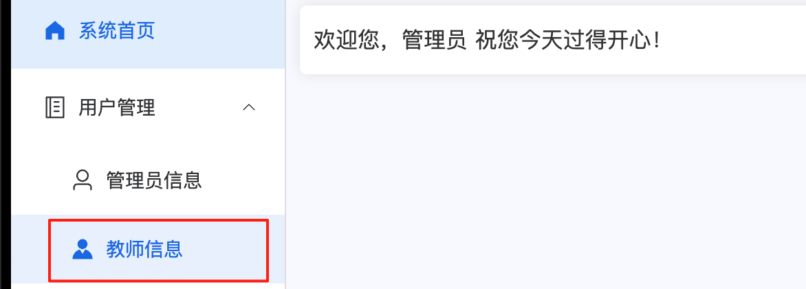 | <el-menu-item index="/teacher"> <el-icon><Avatar /></el-icon> /*图标在 https://element-plus.org/ 里面找*/ <span>教师信息</span> </el-menu-item>